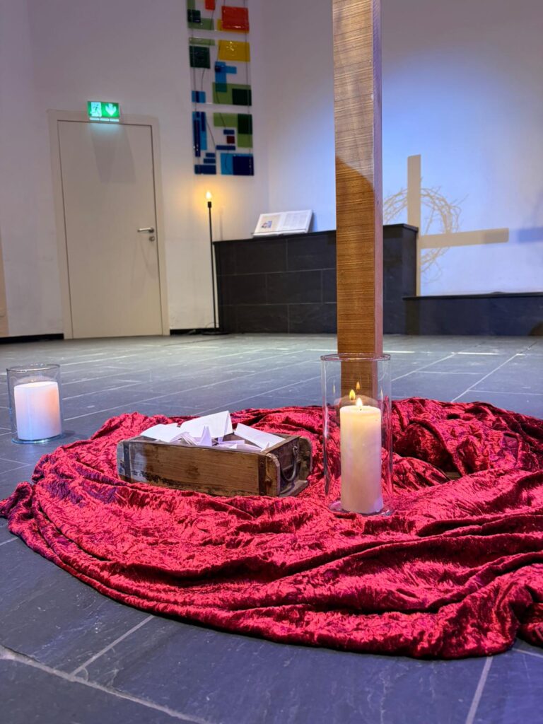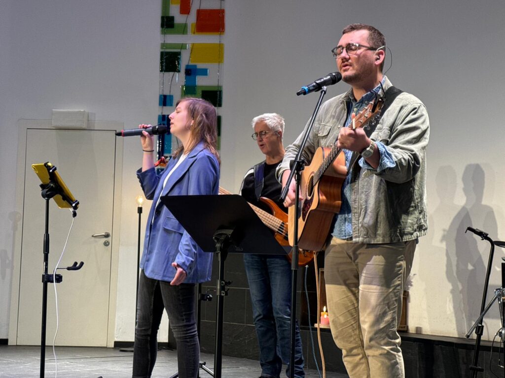 Am Karfreitag haben wir den Gottesdienst erstmals abends gefeiert. In der Predigt von Jugenddiakon Samuel Brecht über den „fröhlichen Wechsel“ wurde deutlich, was es heißt das eigene Leben mit aller Schuld und allen Verletzungen ans Kreuz zu bringen und neues Leben von Jesus zu empfangen. Viele nutzten die Möglichkeit, persönliche Anliegen aufzuschreiben und bewusst ans Kreuz zu legen. Eine weitere Abendmahlfeier in kleinen Gruppen schuf außerdem eine intensive, vertrauensvolle Gemeinschaft.